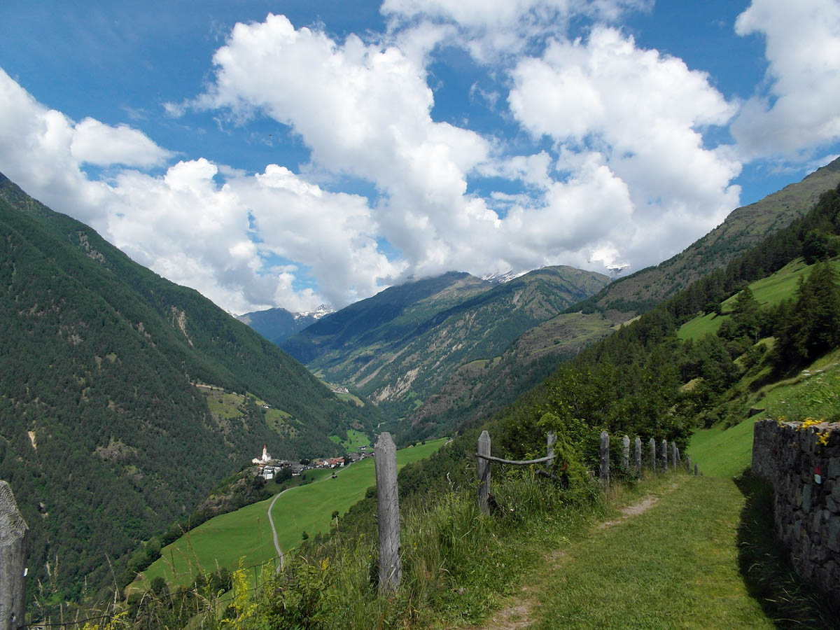 Der Meraner Höhenweg führt mit der Wegemarkierung „24“ auf einer Länge von knapp 100km durch das Vinschgau, Schnalstal, Pfossental, Pfelderertal und das Passeiertal einmal rund um den Naturpark Texelgruppe und kann in 4 bis 8 Etappen gegangen werden.