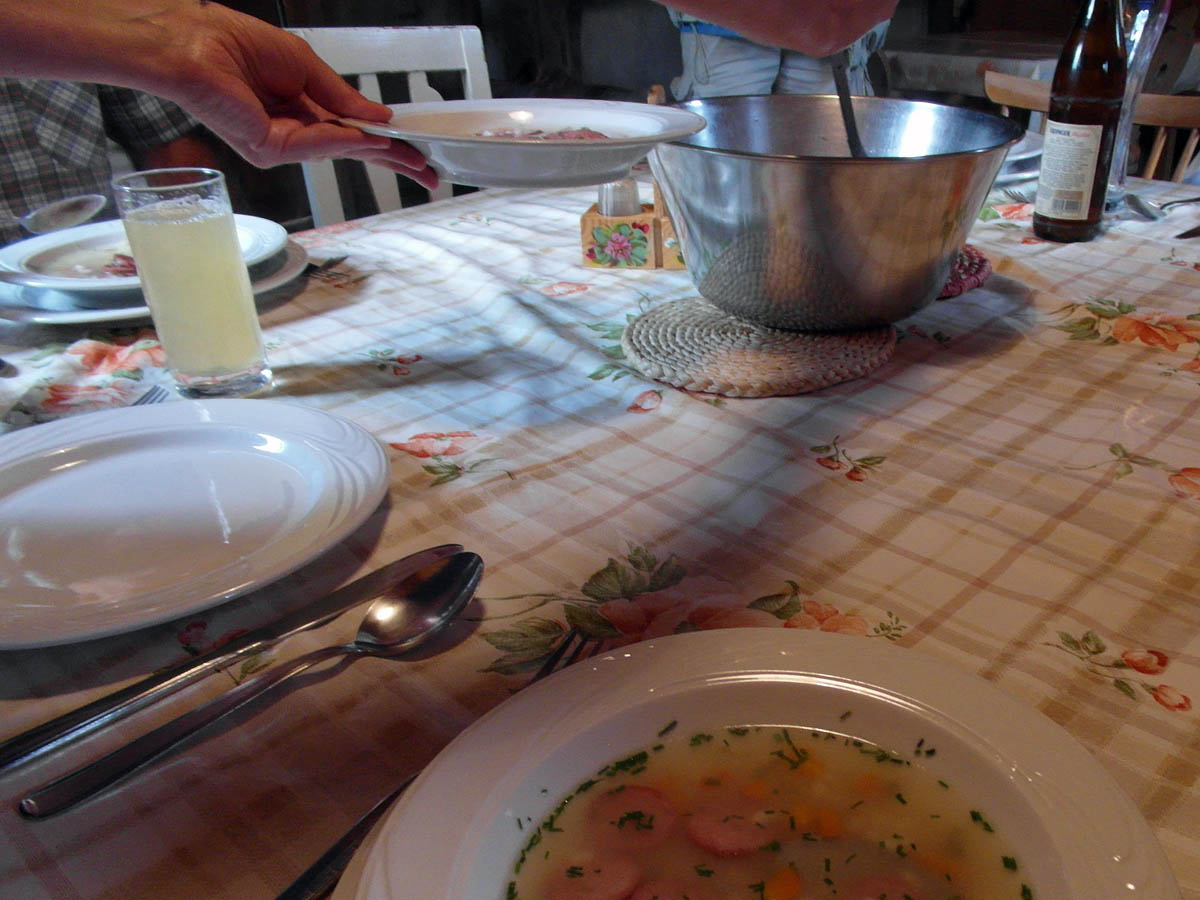 Peu á Peu treffen auch andere Wanderer ein und zum Abendbrot wird – wie im Buch angekündigt – eine Suppenschüssel für alle auf den Tisch gestellt.