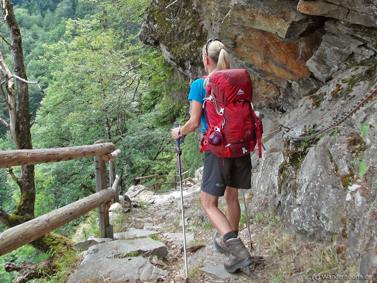 Obwohl ich sonst ein Hüftgurtmuffel bin, musste auch ich einsehen, dass dies bei dem hohen Gewicht einfach Sinn macht. So wird die Last gut auf das Becken verteilt und die Schultern automatisch von einem Teil des Gewichts befreit. Für eine Entlastung haben unterwegs auch die Trekkingstöcke gesorgt, die einen aufrechten Gang unterstützen.
