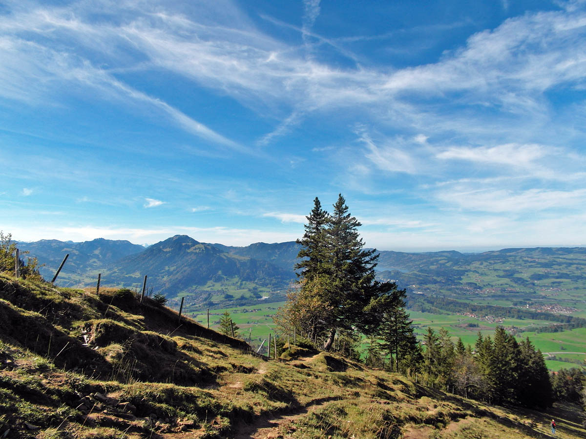 So liegt die Runde ca. 7 km südlicher als der Hörner-Panoramaweg, führt aber ebenso durch den Naturpark Nagelfluhkette.
