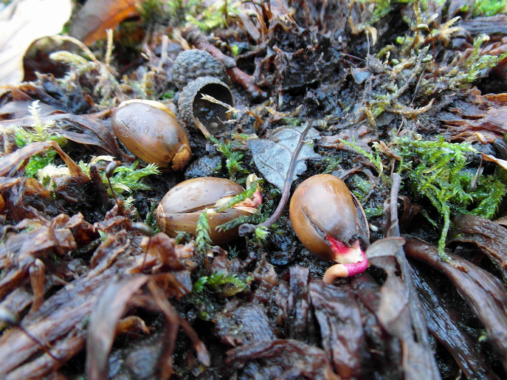 Wann hast Du Dir das letzte Mal einen Baumstumpf in aller Ruhe angesehen? Schau doch die kleinen Eicheln, die aufgeplatzt sind und auskeimen. Ob das mal große und mächtige Bäume werden?