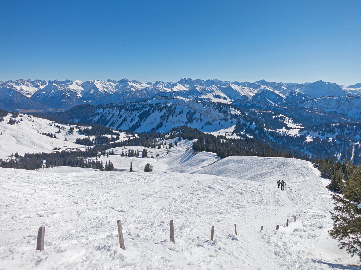 Hier gibt es nur wenige Skilifte und ausschließlich Naturschnee. Das Riedberger Horn bezeichnete Louis Trenker als den schönsten Skiberg Deutschlands. Naja, von Grasgehren aus betrachtet, sieht er eher wie ein „Hügel“ aus 😉