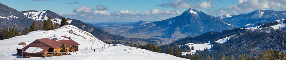 Blick von Blaichach auf SonthofenSicher kein gewöhnlicher „Winterurlaub“ aber so wirklich viel Schnee hat es dieses Jahr selbst im Allgäu kaum gegeben.
