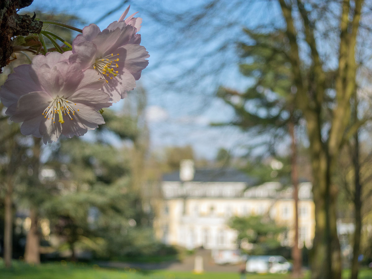 Kirschblüte RheinaueBald werden die Kirschbäume am Haupteingang (Herbert-Wehner-Platz) blühen und auch der Flieder wird seinen Duft verströmen.