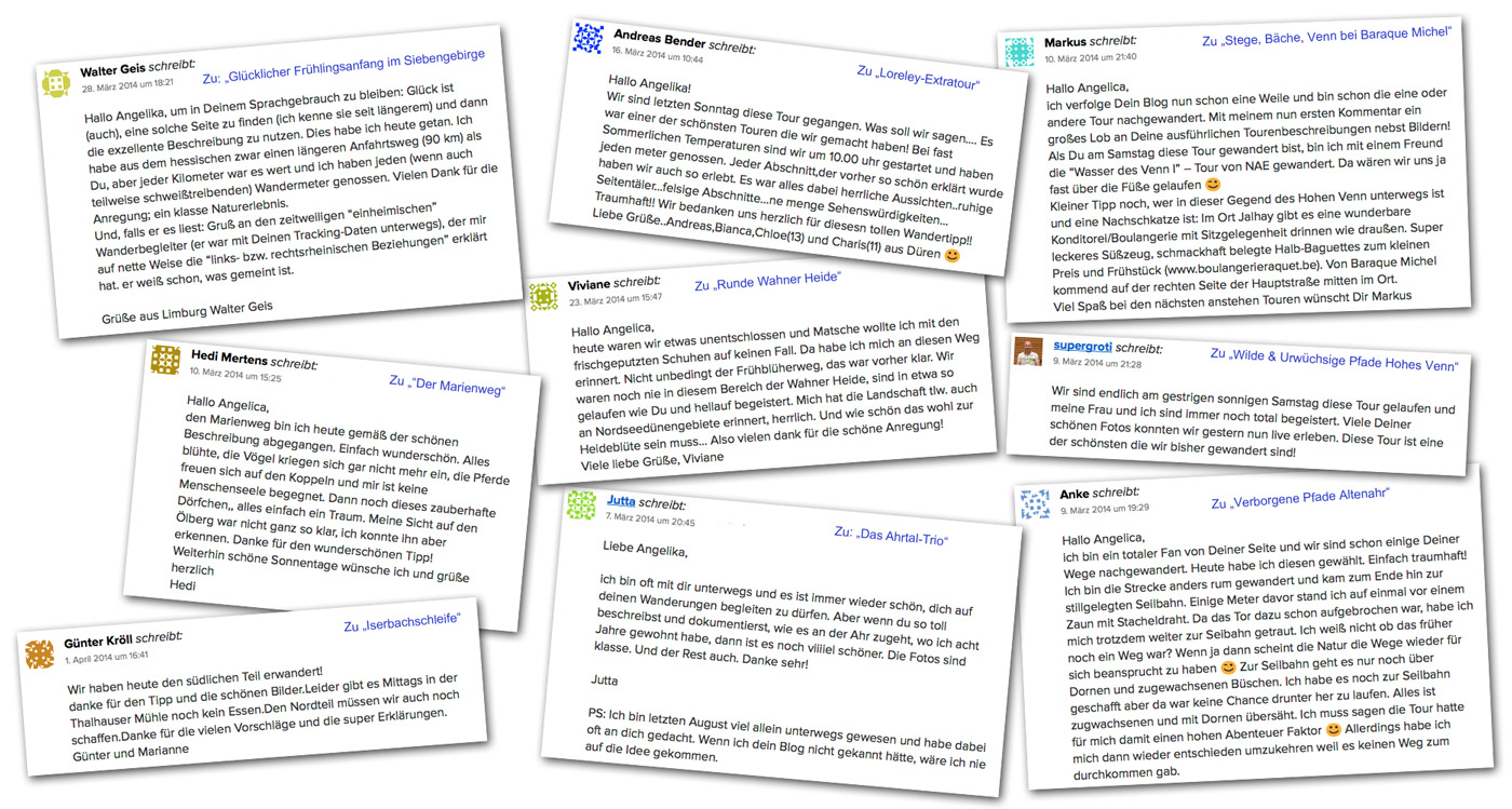 Wenn ich lesen darf, dass meine Berichte zu einem tollen Wandertag anregen konnten und die Tour Spaß gemacht hat, freu ich mich da einfach tierisch drüber. (Hier nur ein kleiner Auszug der letzten Wochen)