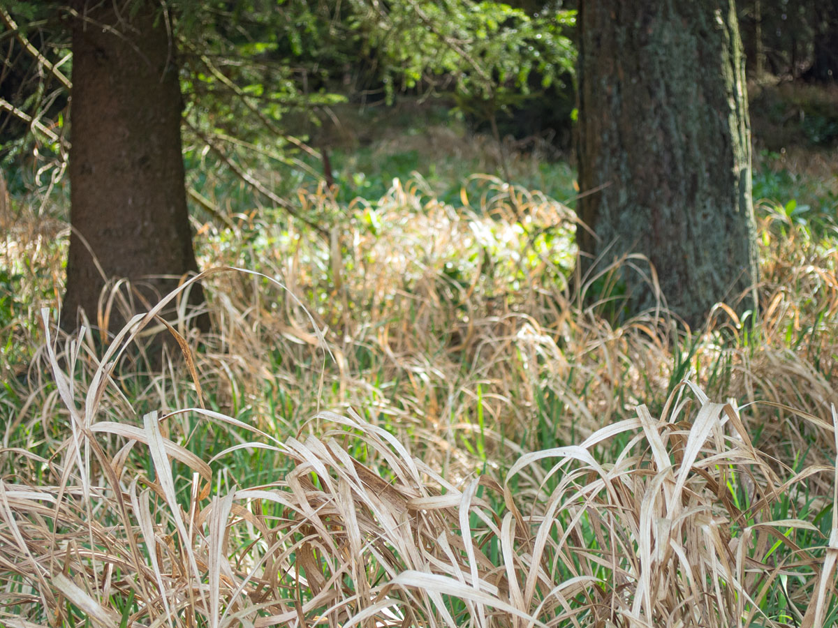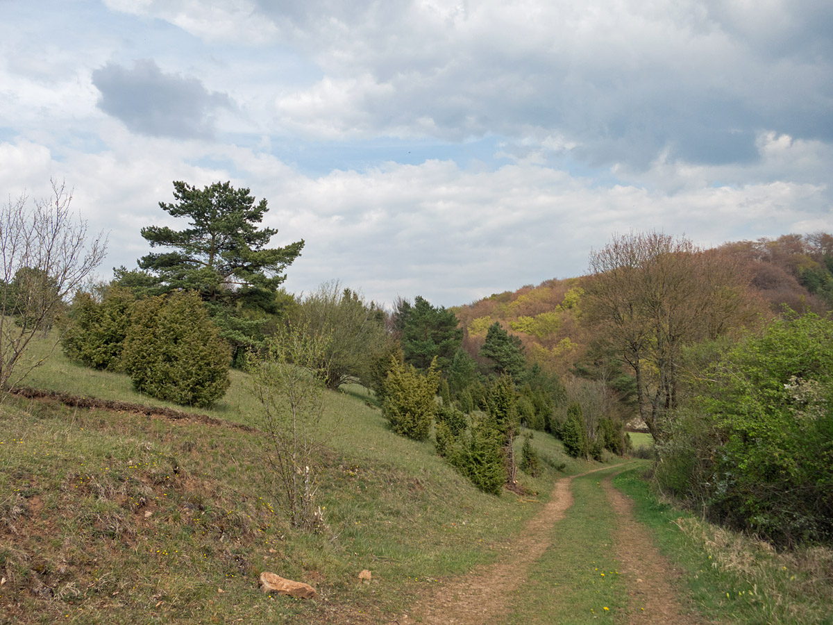 Der Weg führt mich durch das Tal an den ersten Wacholdersträuchern vorbei zu einem versteckt im Wald liegenden Pfad. Das weiche Laub raschelt unter den Sohlen und ich entdecke kleine Triebe von Waldmeister und später sogar Maiglöcken. Die blühen zwar noch nicht, die Blätter strecken sich in hellem Grün jedoch emsig der Sonne entgegen.