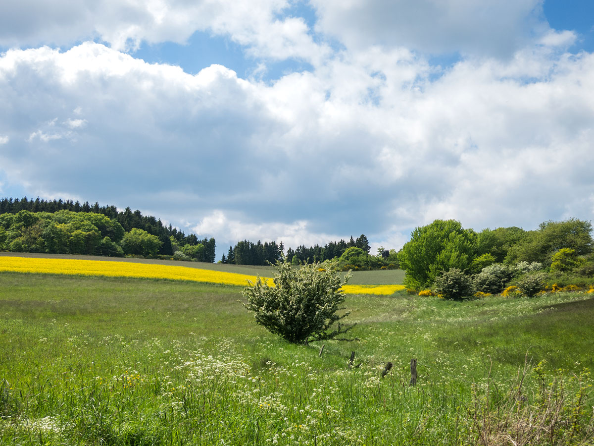 Wiesenwege, die sich in Kehren durch die Landschaft schlängeln; Getreidefelder, die sanft im Wind wogen; hier und da setzten noch die letzten Rapsblüten Farbakzente. Ich glaube, die Bilder sprechen für sich.