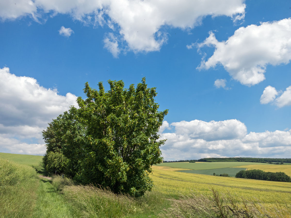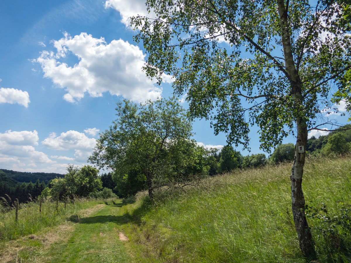 IMG_7422Der Rundweg glänzt mit einem ausgesprochen hohen Anteil an naturnahen Wegen, vor allem über Wiesen und führt abwechslungsreich durch Wald und Flur, wobei die offene Landschaft überwiegt und jede Menge Panoramablicke bietet.