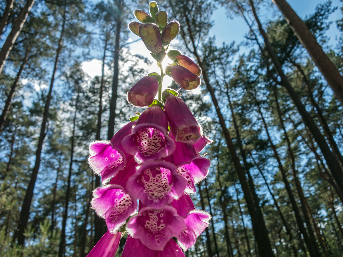 Weiterhin darf ich über Pfade durch diesen herrlichen Wald schlendern. Links und rechts des Weges schießt der Fingerhut aus dem Boden. Über und über mit Blüten besetzt und immens hoch stehen die leuchtend pinken und giftigen Pflanzen zwischen den Kiefern.
