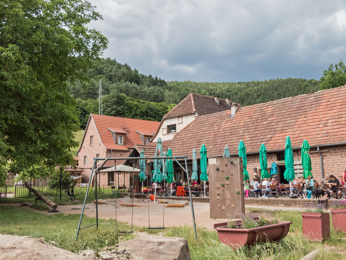 IMG_9015Danach ging es nach Dahn zum Bärenbrunner Hof. Durch die Sperrung der B10 ab Hauenstein musste ich über die Dörfer ausweichen und kam an all den Rundwegen vorbei, die ich letztes Jahr rund um Hauenstein dort erkundet habe.