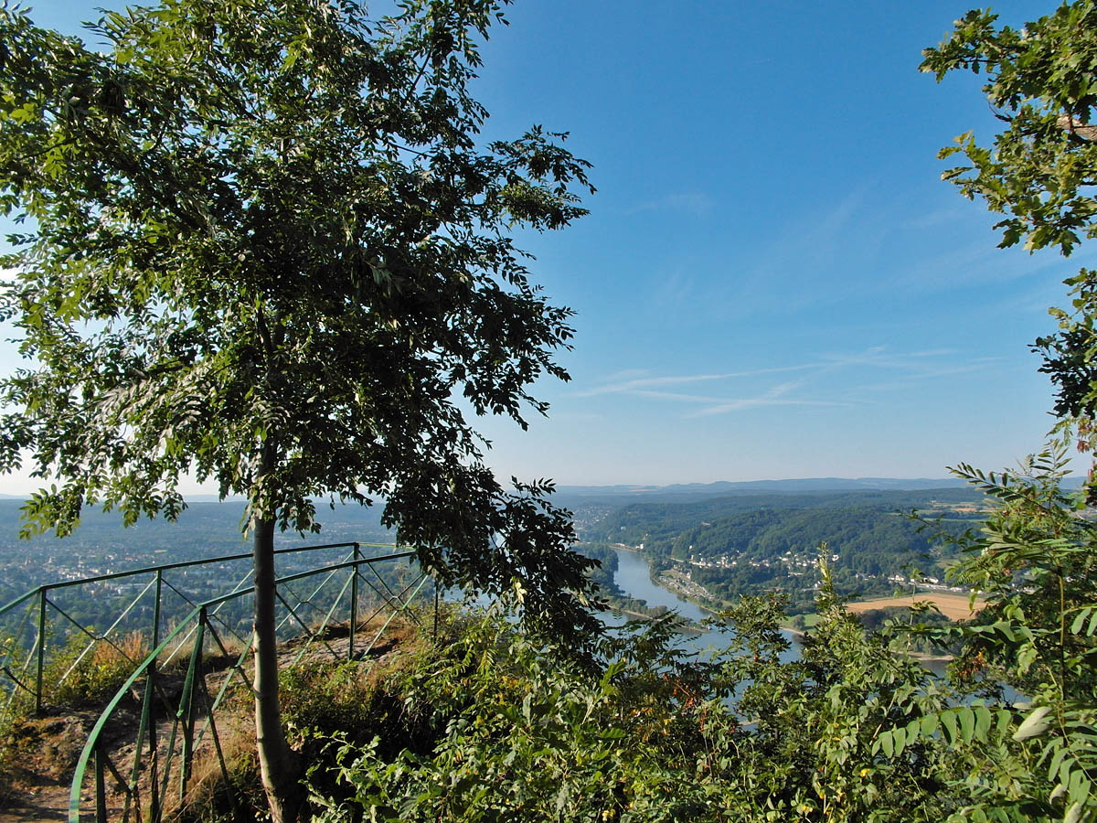 Ein Blick auf das Drachenfelser Ländchen und mein Zuhause auf dem Heiderhof auf der anderen Rheinseite und dann geht es wieder hinab. Irgendwie Klasse find ich ja den Abstieg vom Plateau zum Rheinsteig hinab.