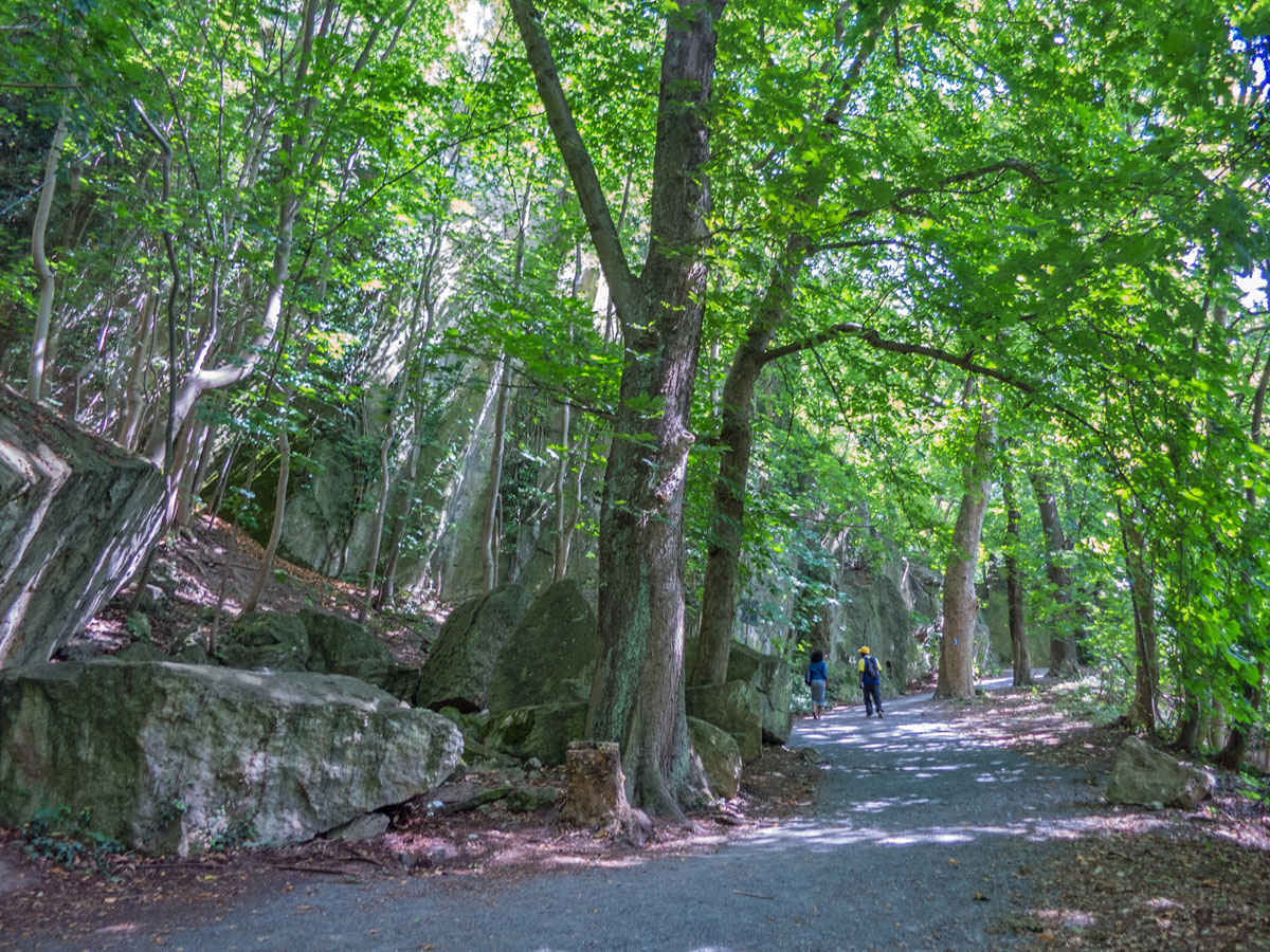 Eine Burg gibt es da oben aber schon lange nicht mehr zu sehen, allerdings viele schmale und steinige Pfade und jede Menge bemooster Steine. In Kehren führt der Weg zunächst hinauf, dann kommen ein paar richtig steile Abschnitte.
