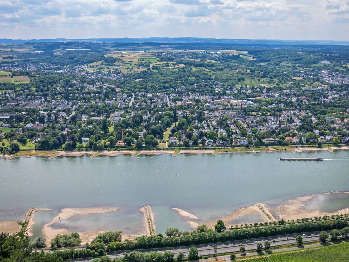 Von hier oben kann man ganz gut erkennen, dass der Rhein derzeit Niederigwasser hat. Es fehlt halt an Regen (naja… der hat in den letzten Tagen sicher für Nachschub gesorgt).