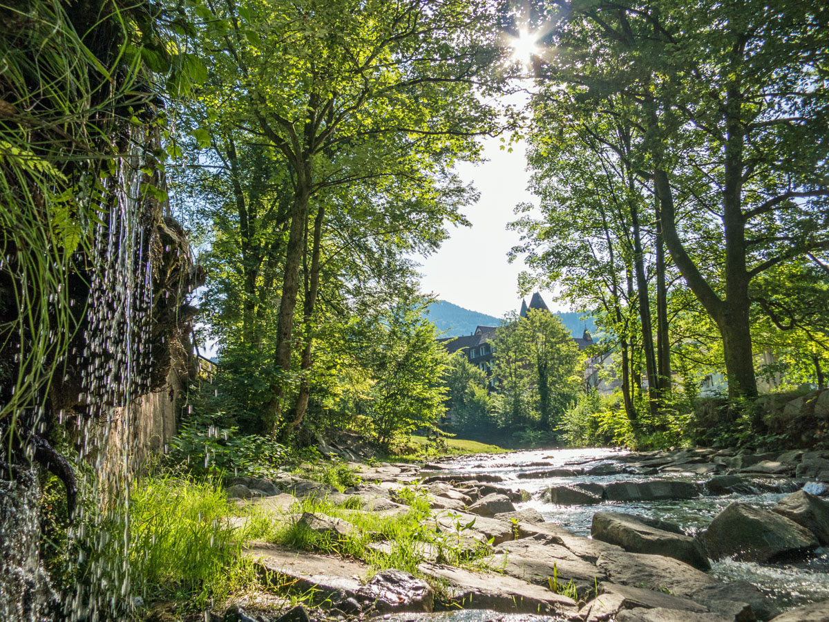 Die Rench begleitet uns mal wild tosend, mal sanft vor sich hinplätschernd durch das Tal, das mittlerweile im Schatten liegt, und bringt uns wieder zum Ausgangspunkt am Weiherplatz.