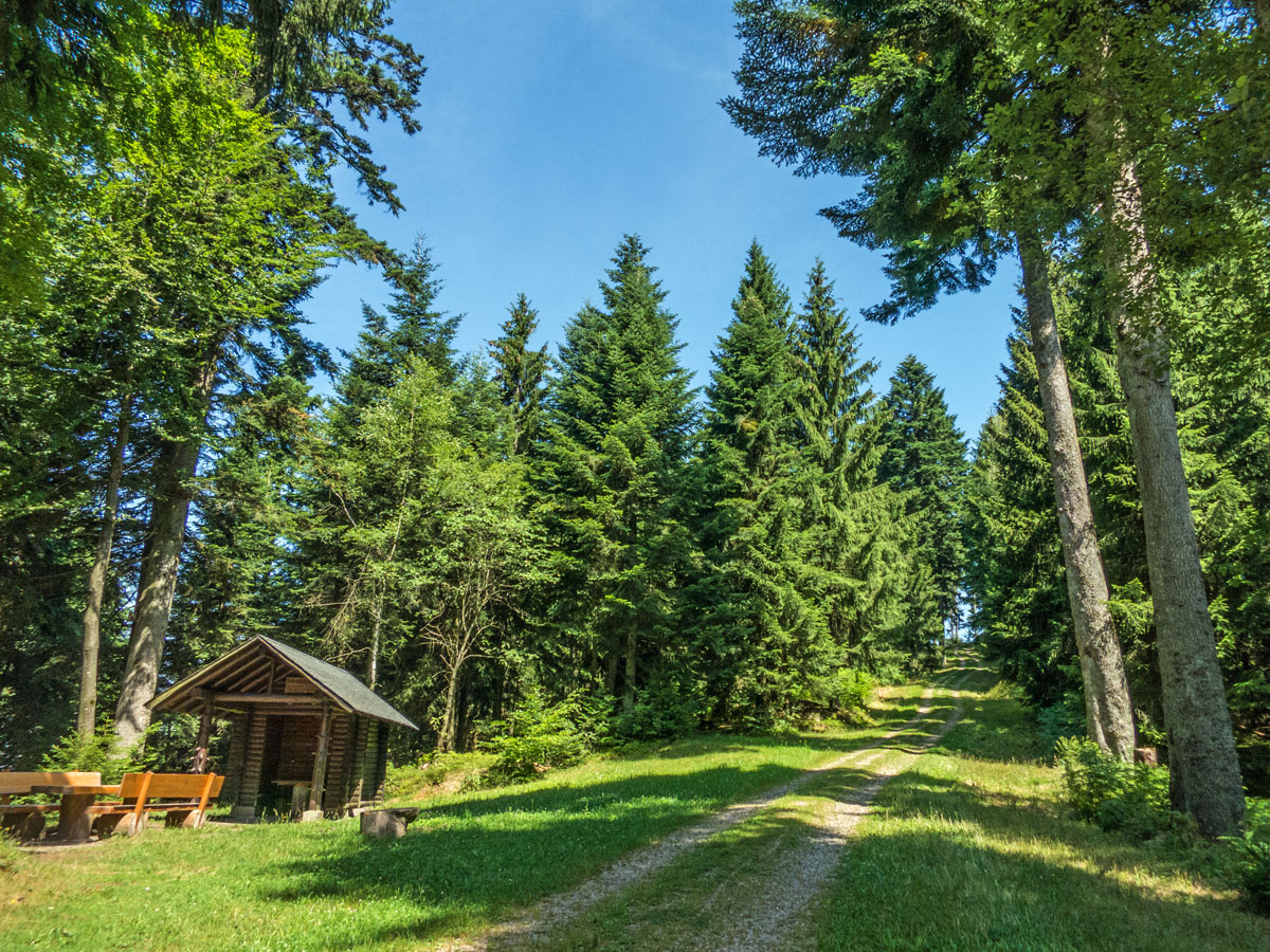 Vorbei am Wiesengründlebrunnen geht es oberhalb von Rollwasen abermals durch den Wald bis ich das Braunbergstüble erreiche.