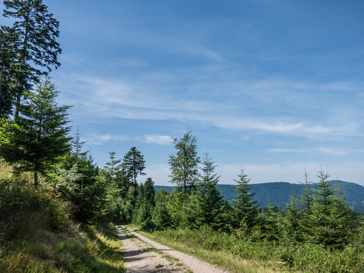 Noch mit den Eindrücken im Kopf folgt ein breiterer Waldweg, der immer wieder für Aussichten sorgt.