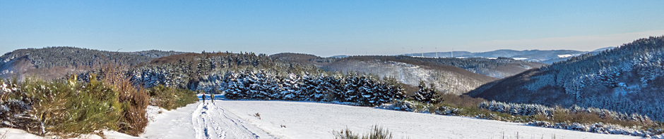 Winterwanderung auf dem verschneiten Bergheidenweg
