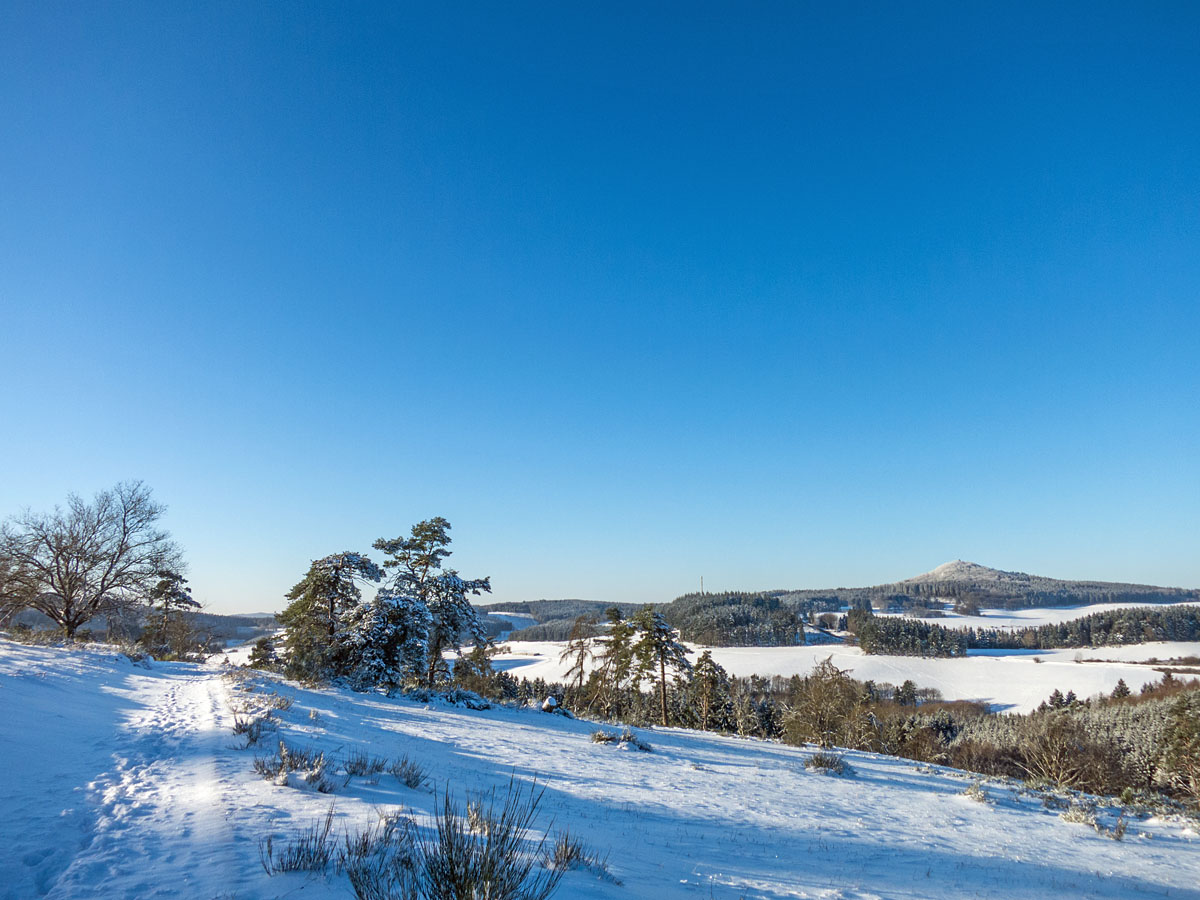 Winterwanderung auf dem verschneiten Bergheidenweg