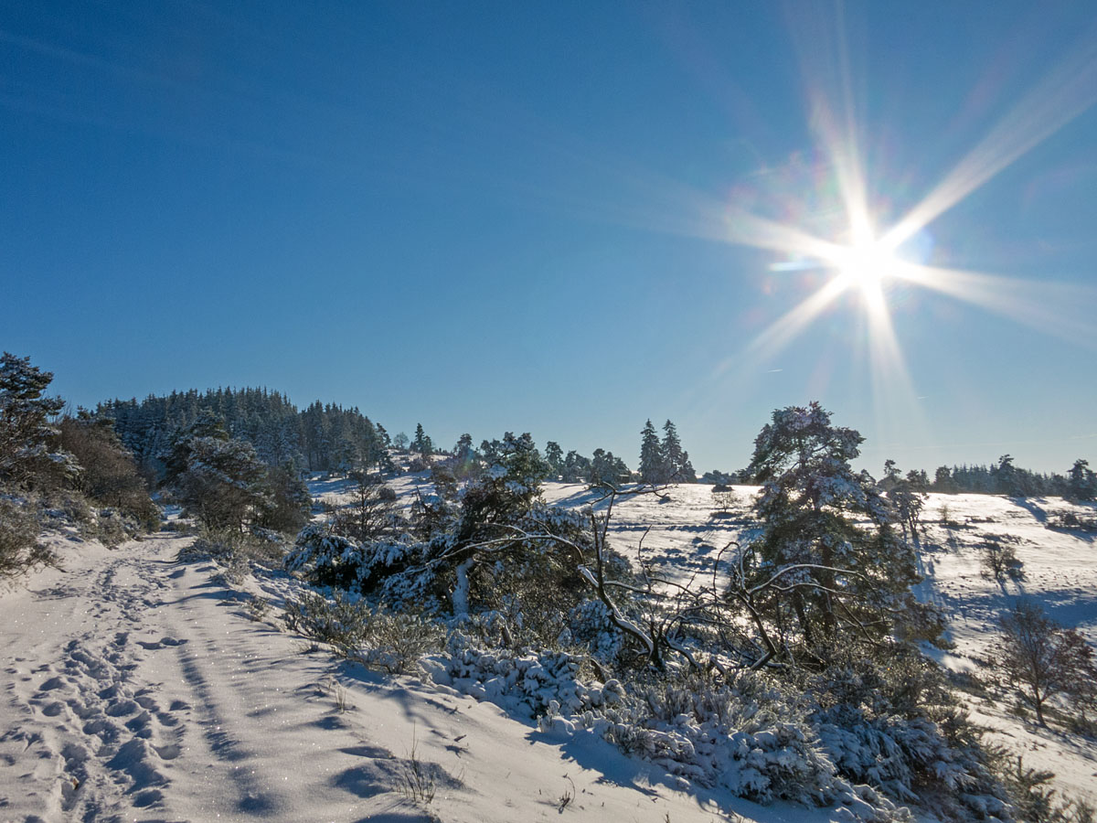 Winterwanderung auf dem verschneiten Bergheidenweg