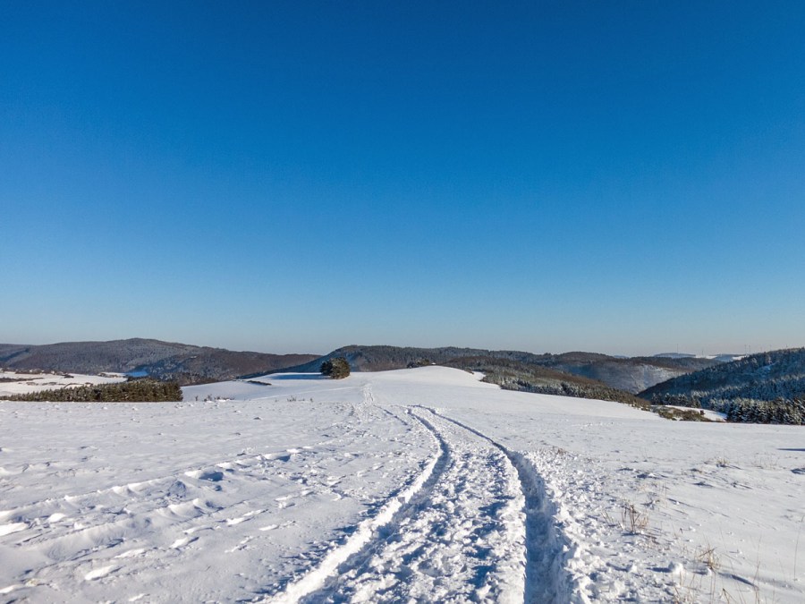 Winterwanderung auf dem verschneiten Bergheidenweg