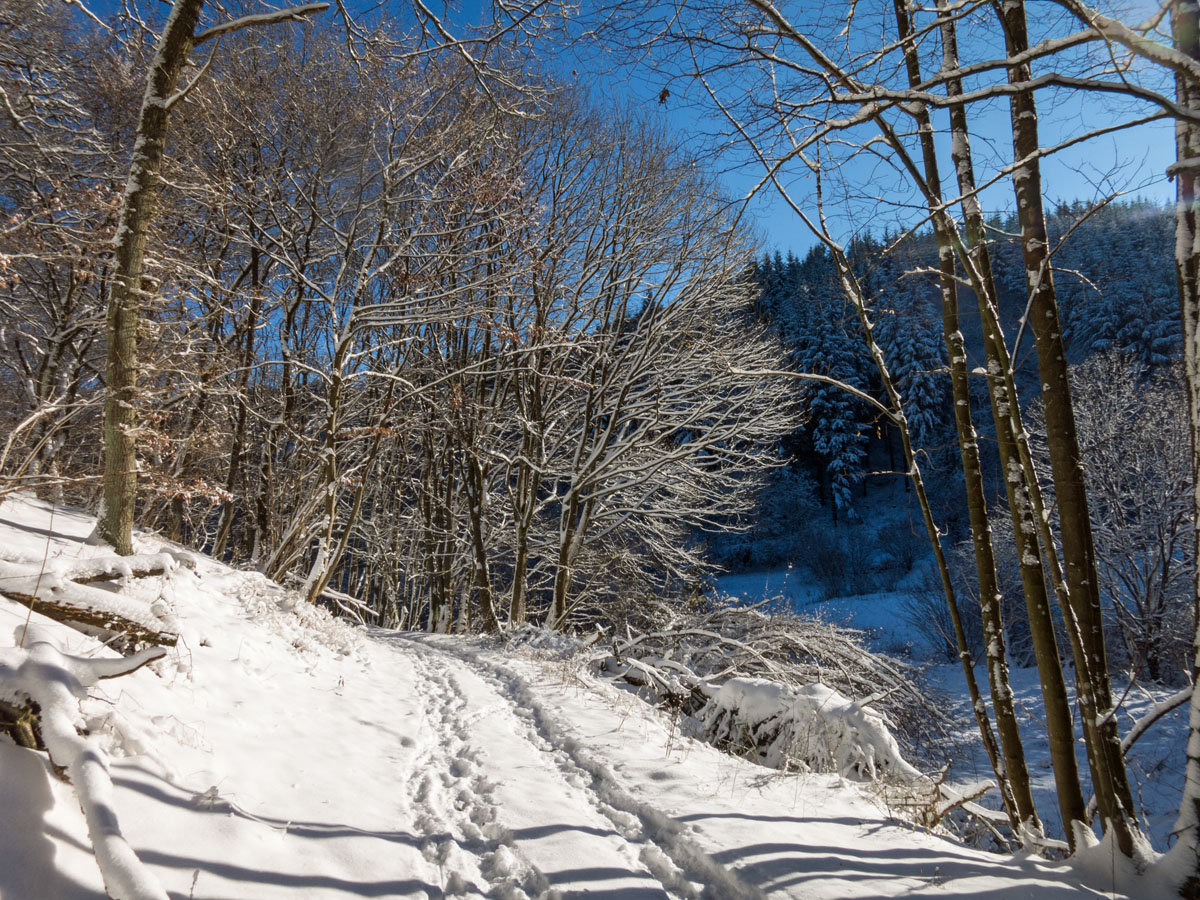 Winterwanderung auf dem verschneiten Bergheidenweg