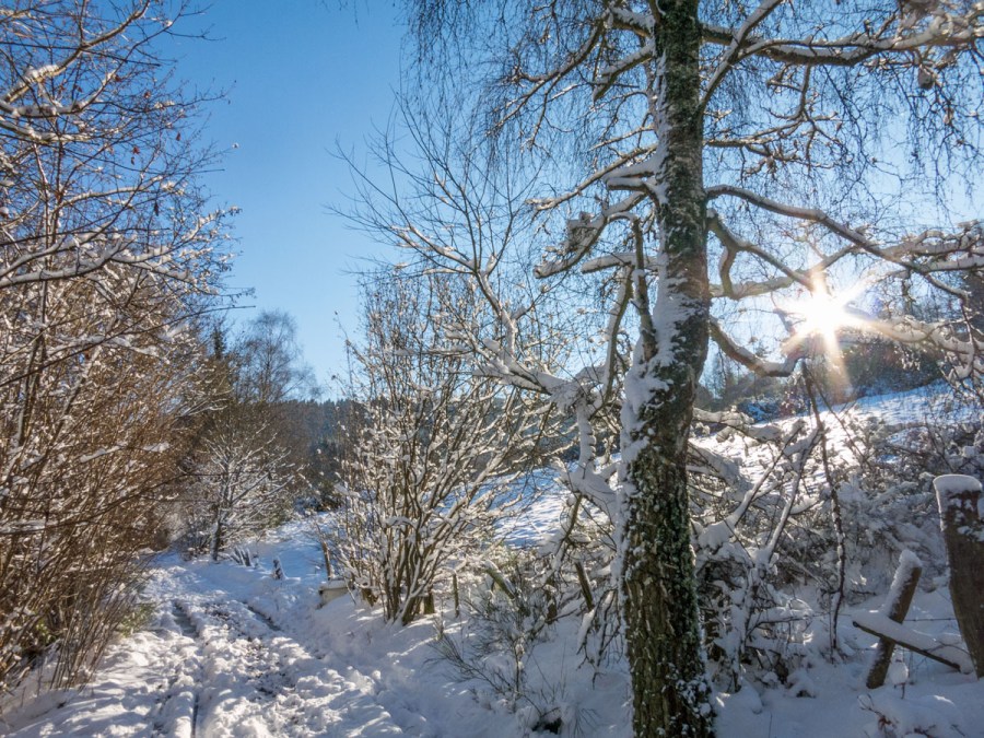 Winterwanderung auf dem verschneiten Bergheidenweg