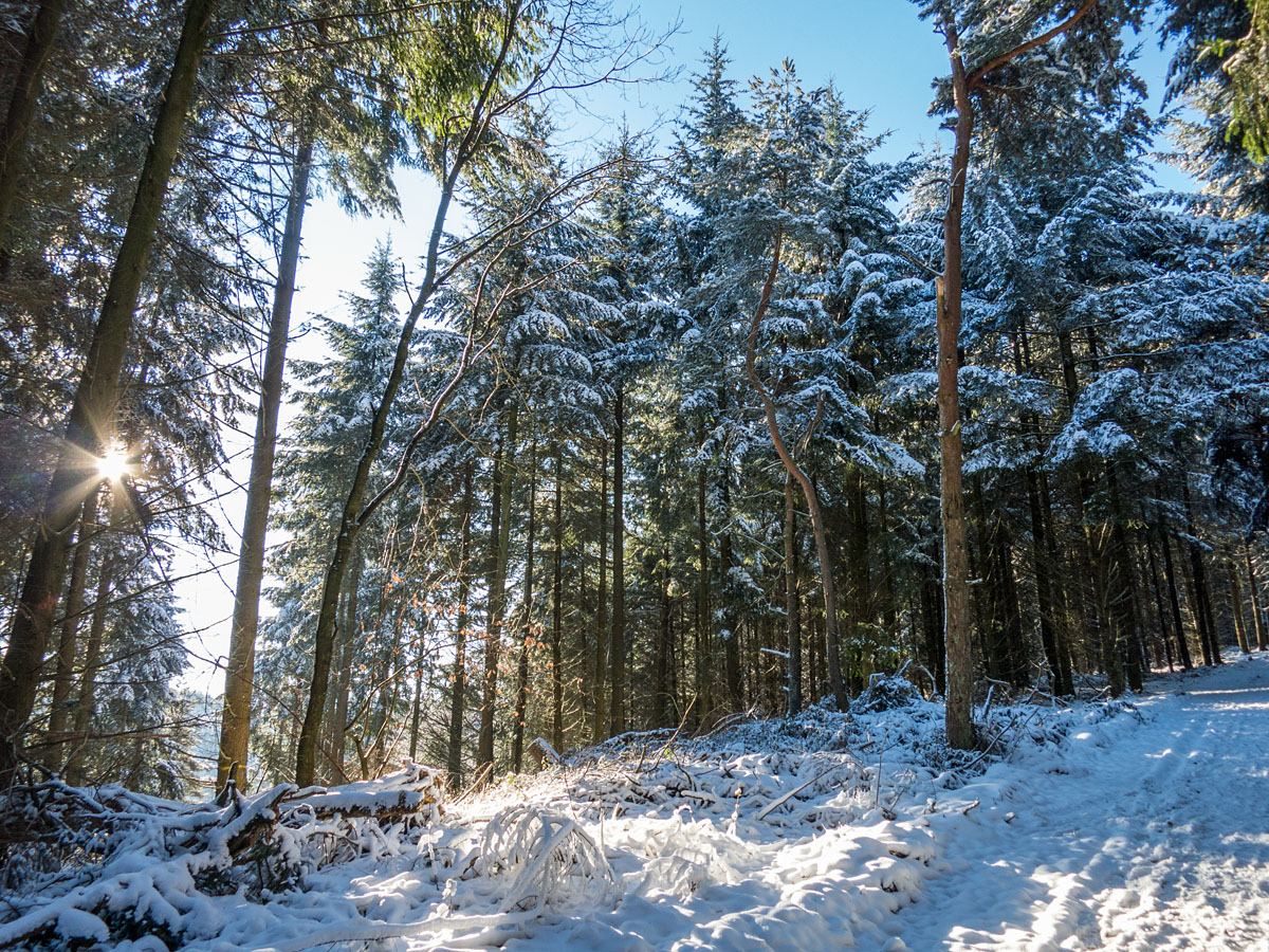 Winterwanderung auf dem verschneiten Bergheidenweg