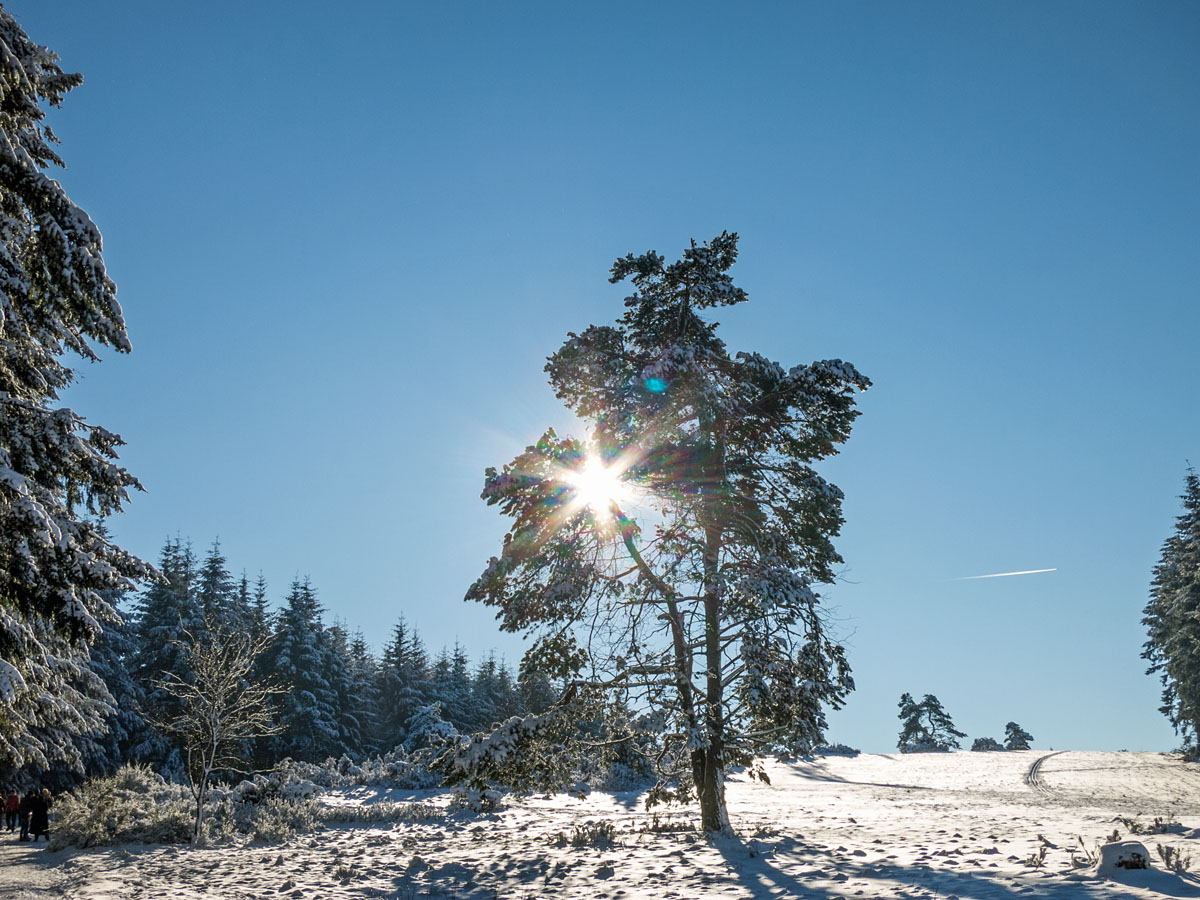 Winterwanderung auf dem verschneiten Bergheidenweg
