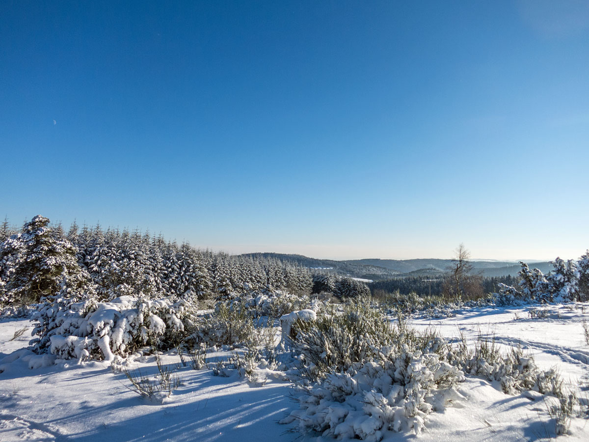 Winterwanderung auf dem verschneiten Bergheidenweg