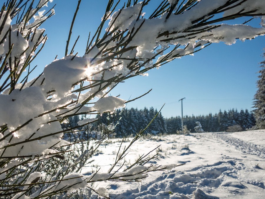 Winterwanderung auf dem verschneiten Bergheidenweg