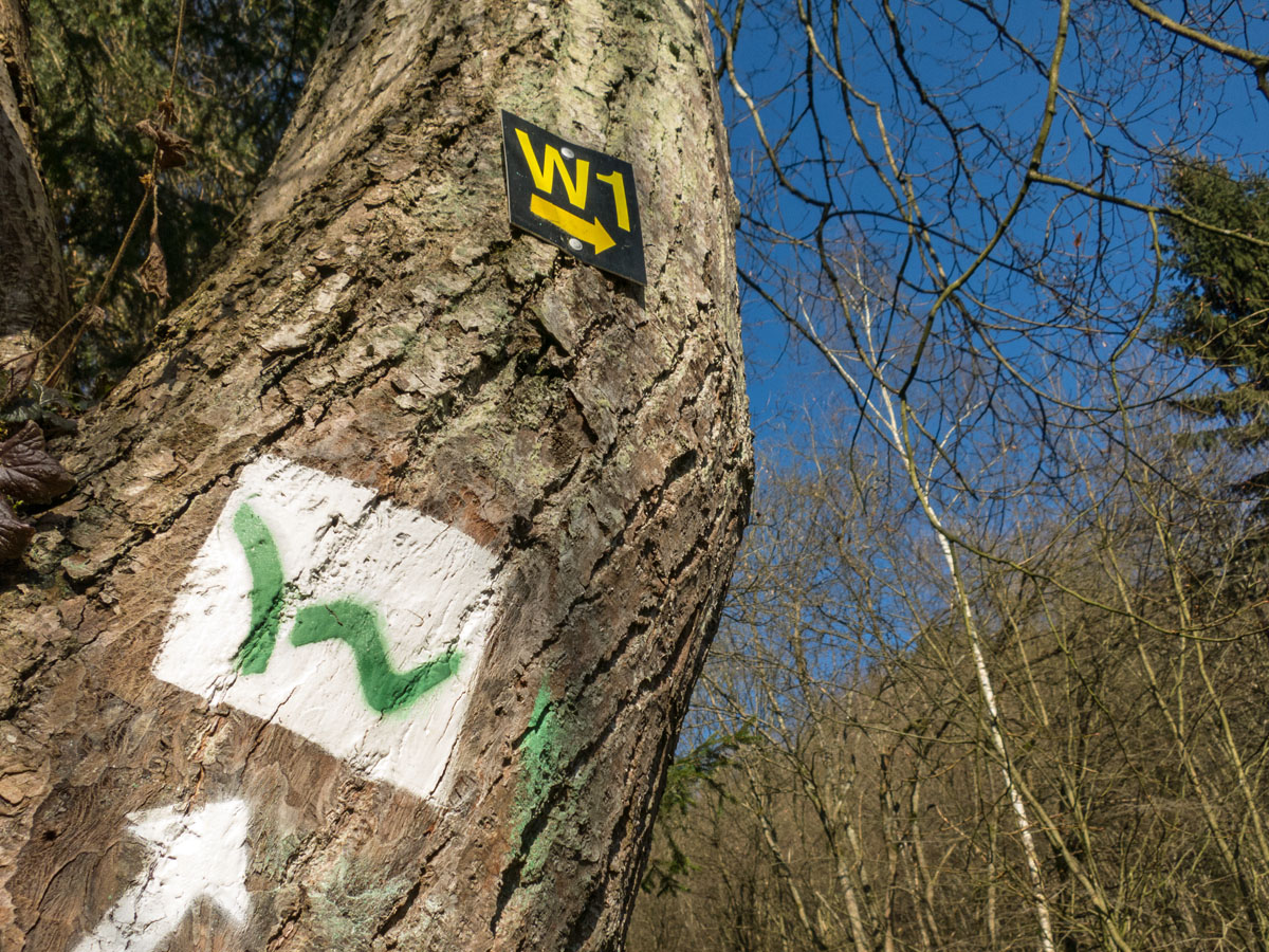 IMG_7492Vom Startpunkt am Krippenmuseum, direkt an der Wied gelegen, geht es kurz über den Zuweg des Westerwaldsteigs und dann auch direkt hinauf. Ich folge dem Westerwaldsteig und biege auf den örtlichen Wanderweg (W1) ab, der mich oberhalb der Wied entlang führt.