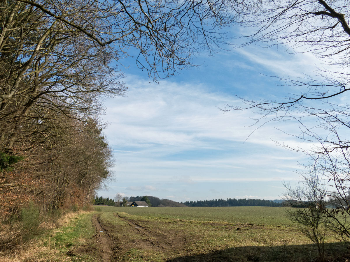 IMG_7642Eine halbe Stunde später mach ich mich wieder auf und der Wald öffnet sich. Über Feldwege geht es in Richtung Verscheid und über den Pilgerweg (N2) ein Stück neben der Straße entlang.