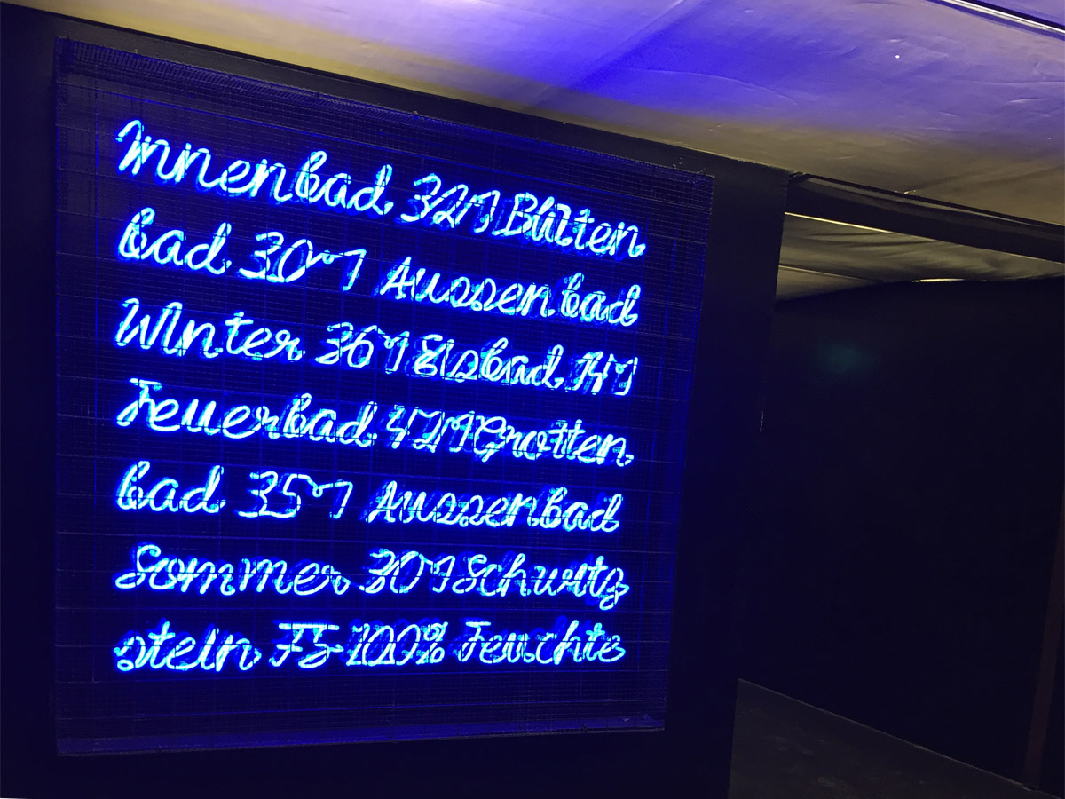 Dazu ein Innen- und ein Außenbecken und Ruheliegen, die den Blick auf die umliegende Bergwelt ermöglichen. Man schlendert in Ruhe durch das Gebäude und schaut neugierig in die jeweiligen Räume hinein. Auch die Klangräume und das Klangbad sollte man unbedingt ausprobieren.