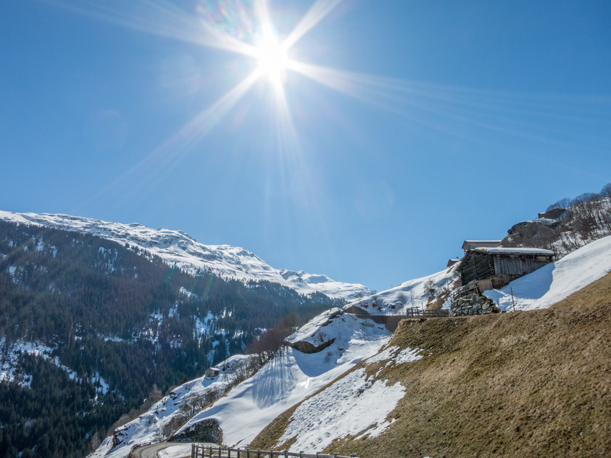 Doch nur kurz ist mein Weg über die Straße, denn schon finde ich den nächsten Abzweig zur Leisalp und Zurts hinauf. Hier sind nur offene Wiesen und der Schnee größtenteils geschmolzen.