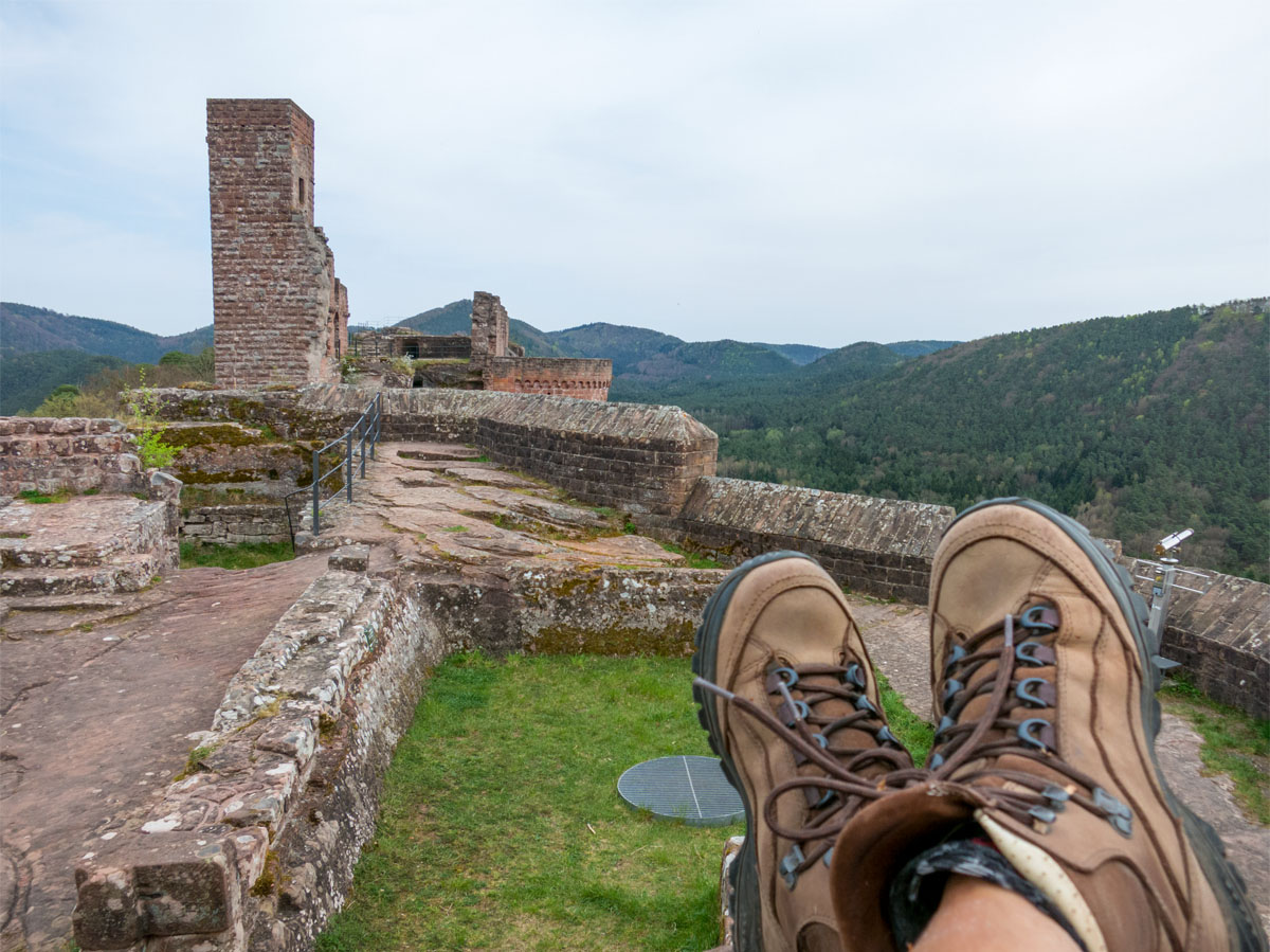 Als erstes schaue ich mir Altdahn an und gehe über die Holztreppe bis hinauf. Leider hat es sich ein wenig zugezogen, doch ich kann von hier viele Stellen, an denen ich eben noch unterwegs war, erkennen.
