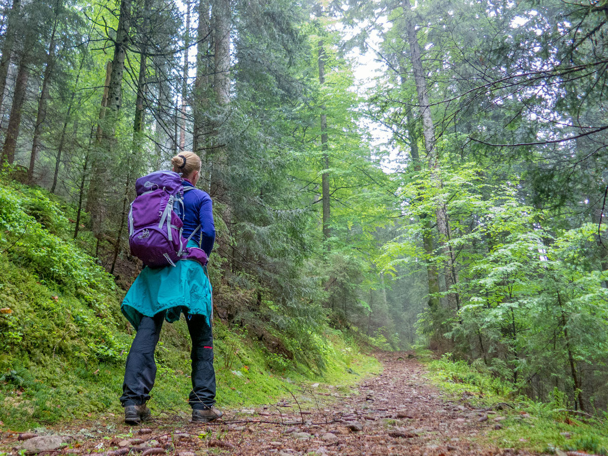 Der Vatertag beginnt verregnet. An meinem vorletzten Urlaubstag möchte ich jedoch nicht die „Wellness-Karte“ zücken, sondern packe trotzdem meinen Rucksack. So schlimm wird es schon nicht werden und außerdem mag ich die Regenstimmung in den Bergen.