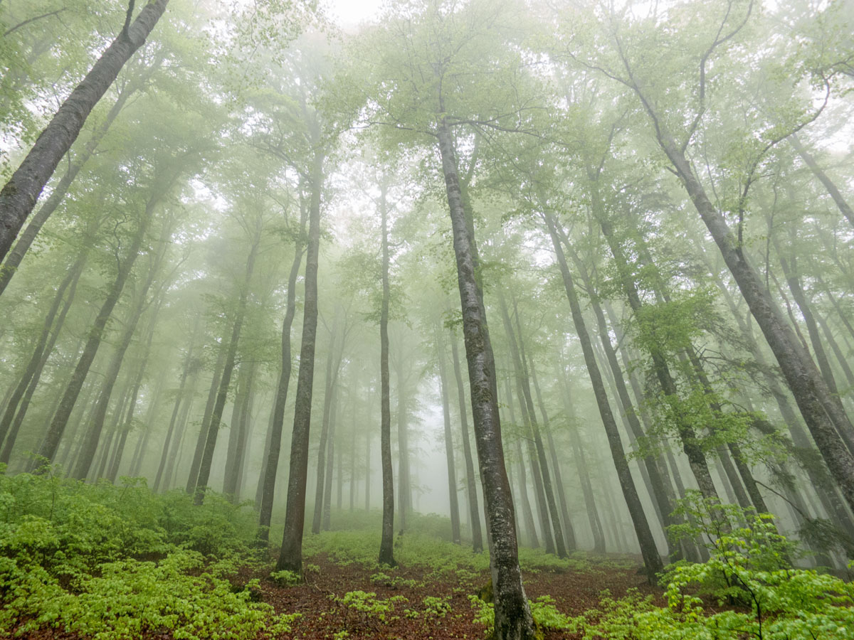Die Nebelschwaden hier oben geben dem Wald eine mystische Stimmung. Die Luft ist klar und ich bin scheinbar alleine hier unterwegs.