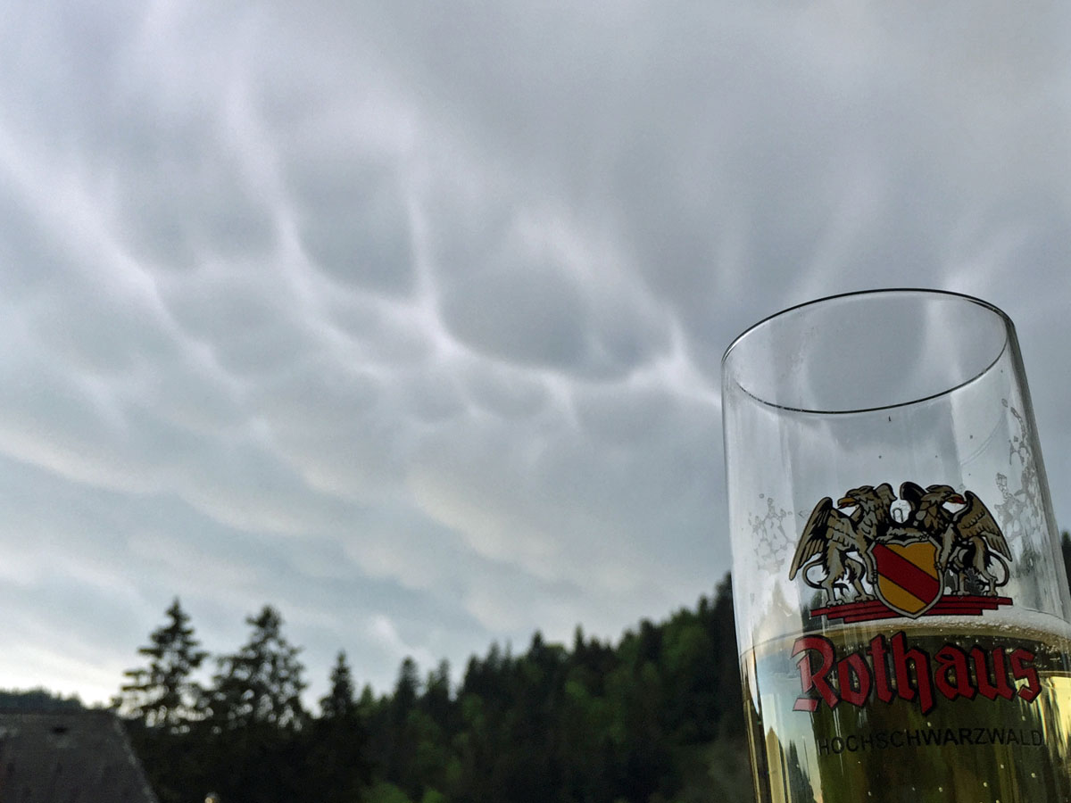 Einige Stunden und 1 oder 2 Radler später, türmen sich jedoch Mammatus-Wolken über mir auf, so dass ich den Rest des Abendessens lieber drinnen einnehme.