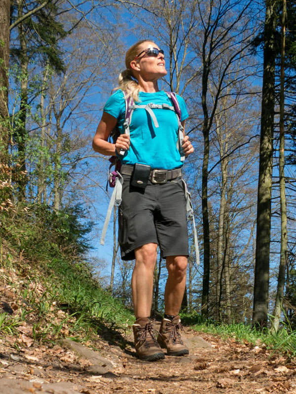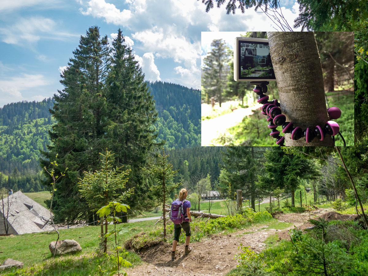 Um einem Landschaftsbild mehr Raum und Tiefe zu geben, helfen oft Wanderer auf dem Foto. Wer nicht grade Frau, Mann, Hund oder Kinder dabei hat, die sich in Szene setzen lassen, kann dies mit Hilfe eines Stativs auch gut bei seinen Solo-Wanderungen tun. Die meisten Kameras haben einen Selbstauslöser, der ggf. sogar 3 Bilder hintereinander auslöst.