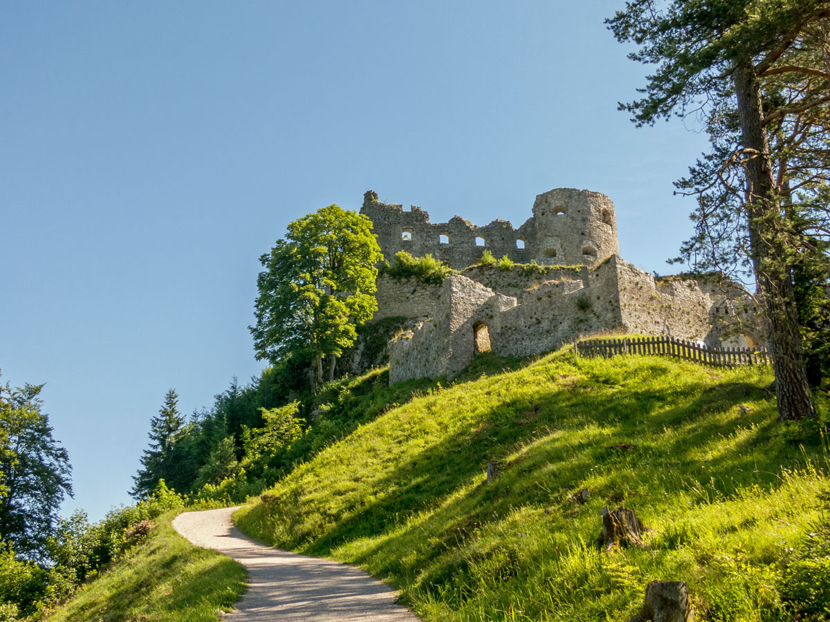 3 EUR Parkgebühr und 8 EUR für die Brückenquerung werden fällig, dann geht es gut 350hm hinauf bis zur Ruine Ehrenburg, die ich kurz erkunde. Am Brückeneingang steht ein Eingansportal, welches mir mithilfe der gelösten Karte Einlass gewährt.