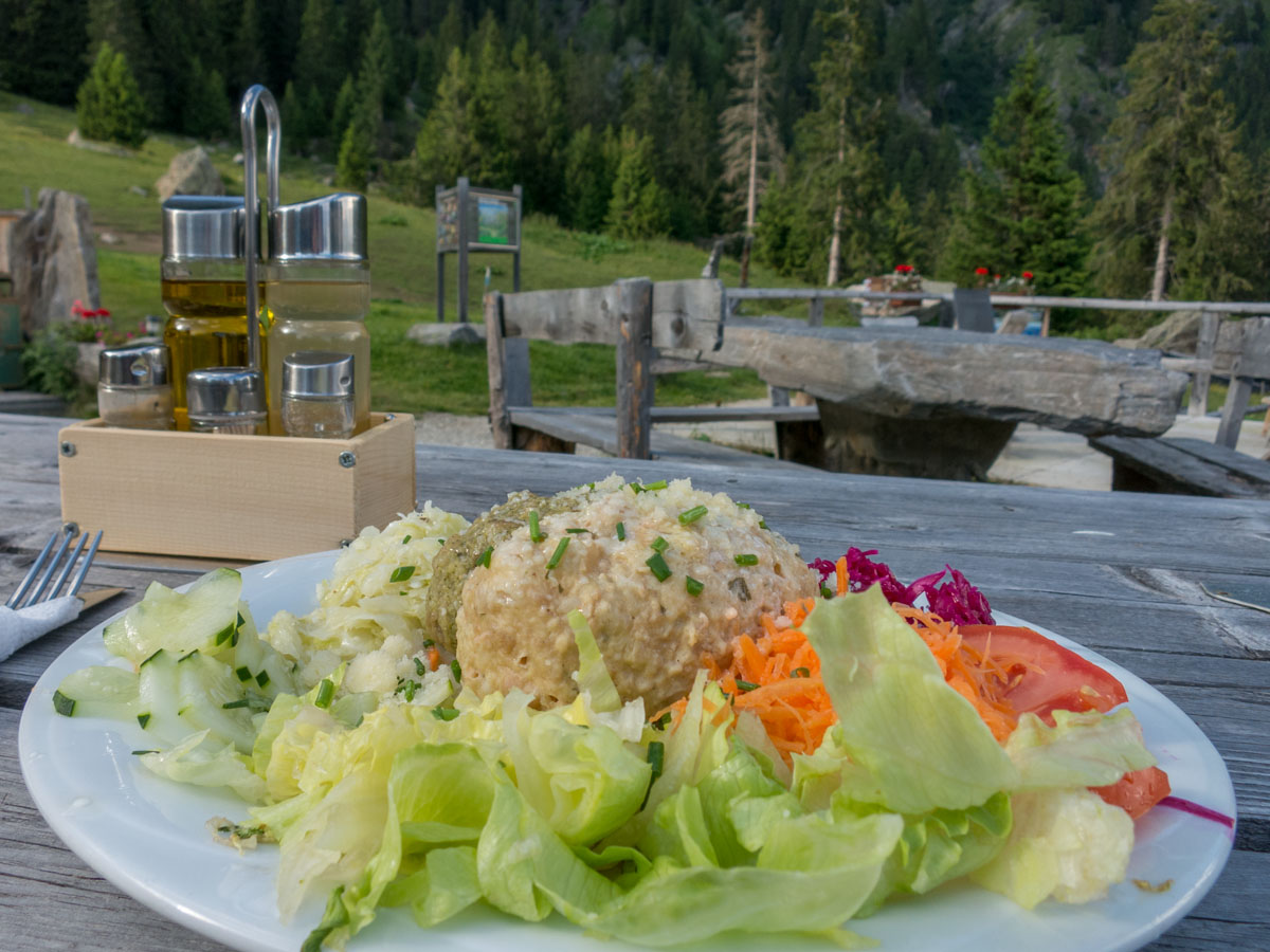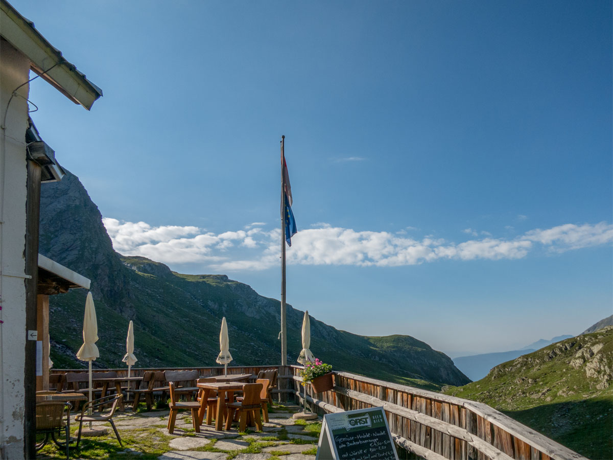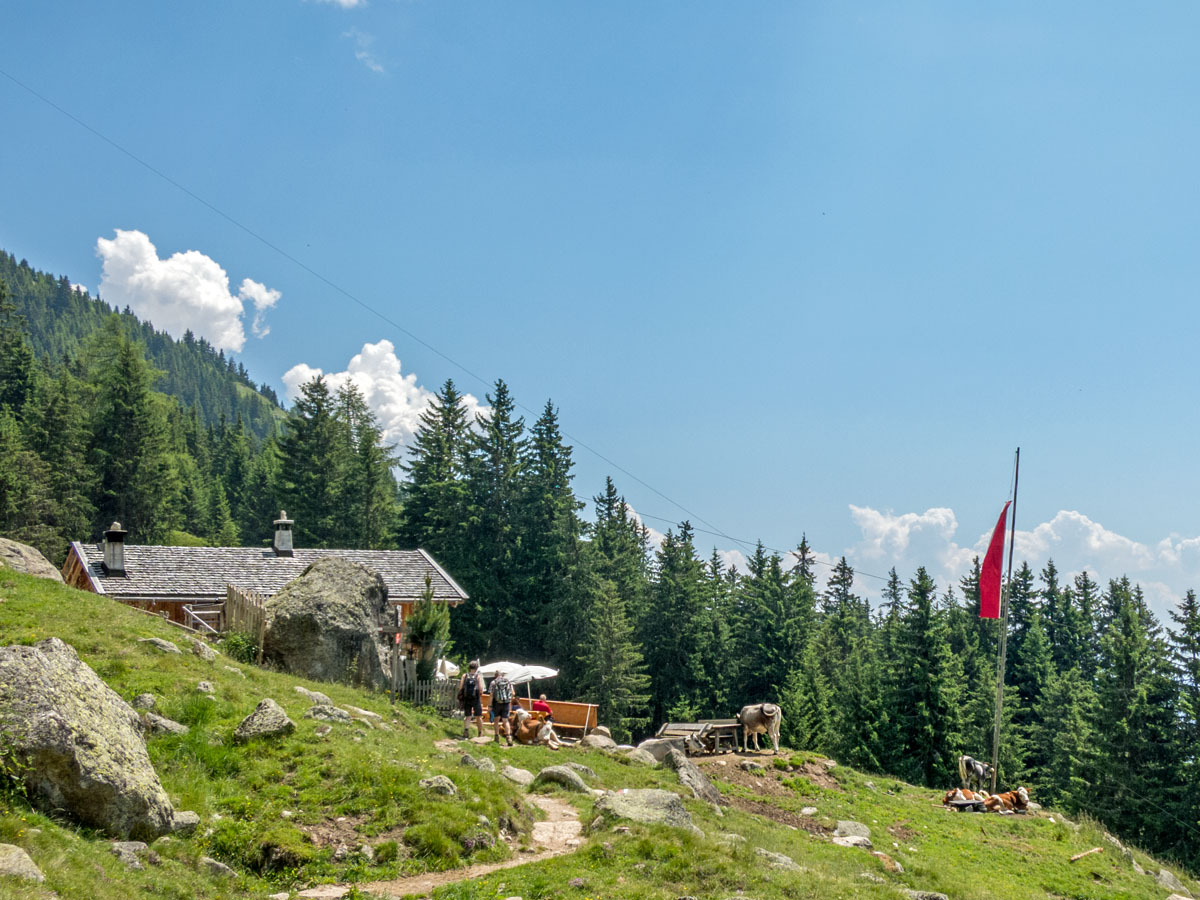 IMG_5519Die Zielalm im Blickfeld ist es jetzt nicht mehr weit bis zur Lodnerhütte, die etwas oberhalb auf einem „Hügel“ liegt. Lediglich der Wirt sitzt mit seiner Frau auf der Terrasse, als ich dort ankomme.