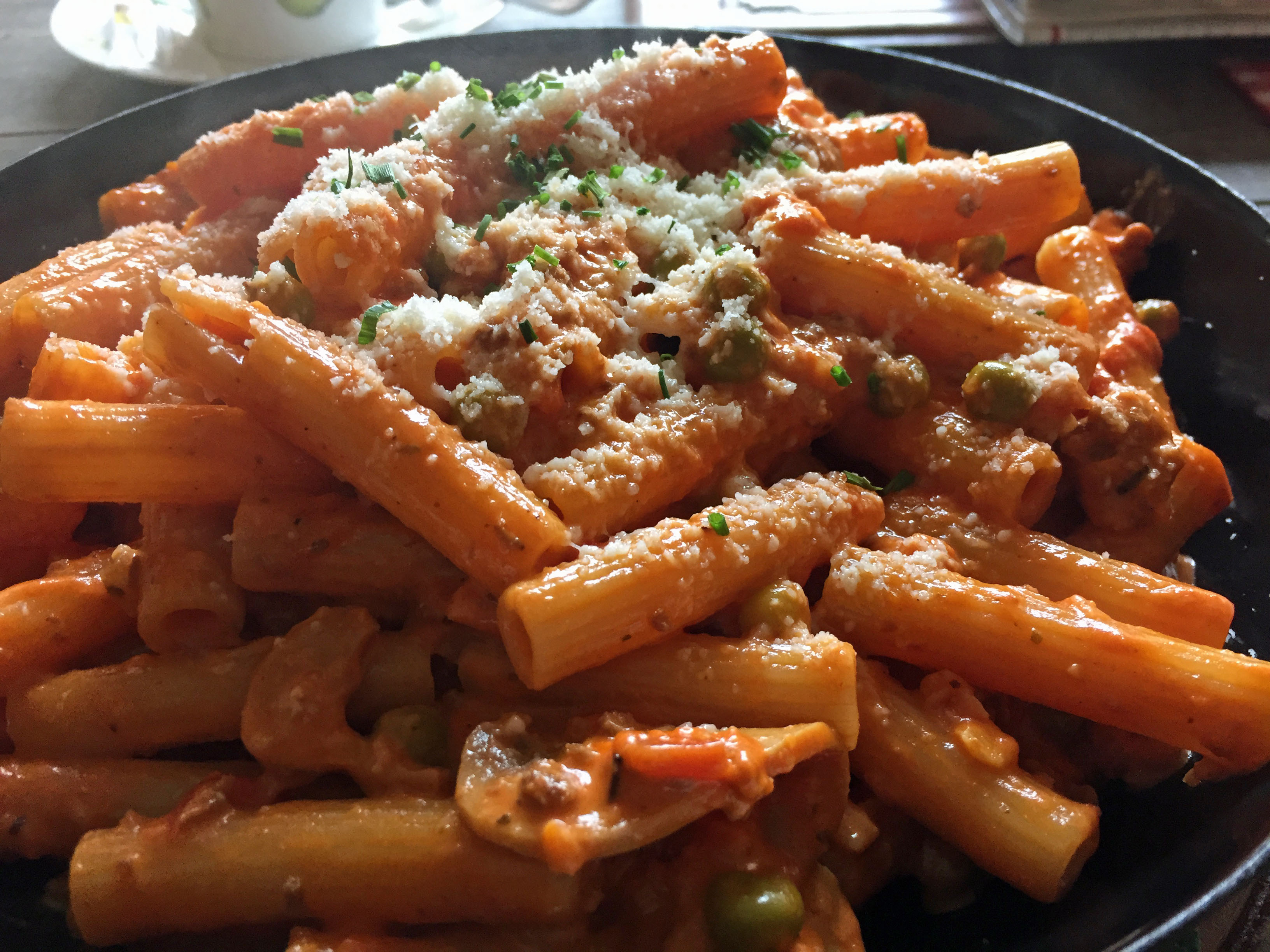 Da ich nicht vorbestellt habe, ist meine erste Frage, als ich dort ankomme, ob sie ein Bett für mich haben. Als mein Übernachtungsplatz gesichert ist, springe ich kurz unter die Dusche, setze ich mich auf die Terrasse und lass mir eine hausgemachte Lasagne schmecken.